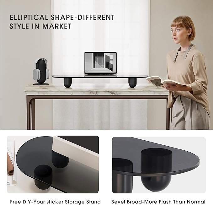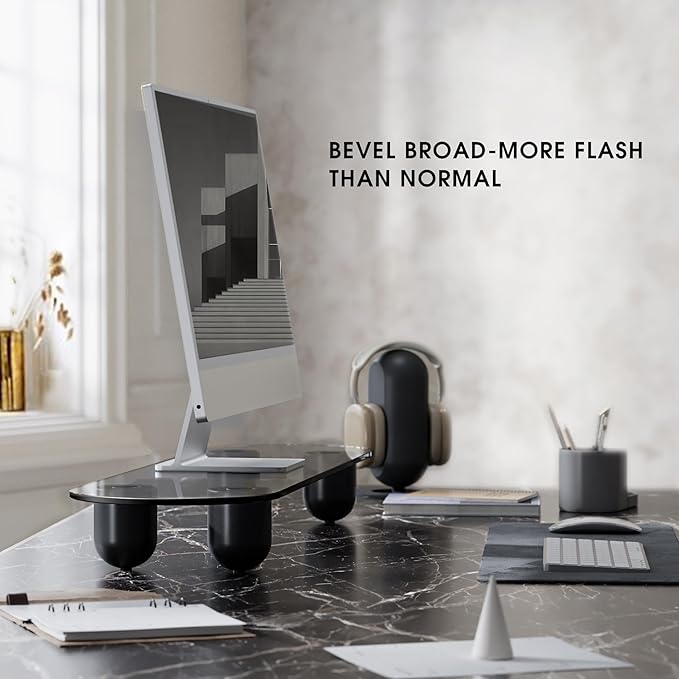 - 【Heavy-Duty Stability】Engineered with tempered glass and solid wood rounded legs that uniformly distribute weight. Safely supports 44 lbs - ideal for dual monitor riser for desk configurations.