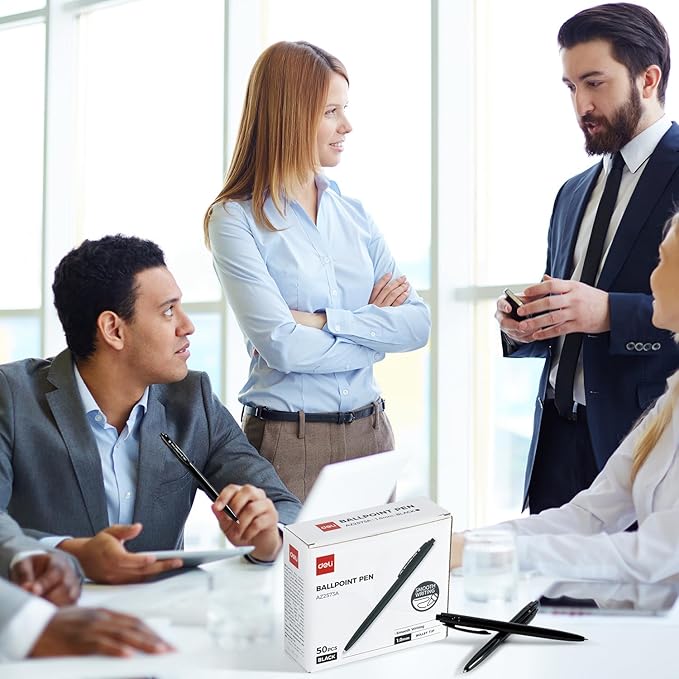 deli Pens Bulk, 50 Pack Retractable Ballpoint Pens, 1.0MM Black Ink,Smooth Writing, No Bleed, Comfortable Grip for Home,Office & School Use