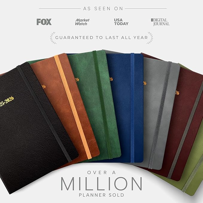 - ๐๐จ๐ก๐๐ง๐๐ข๐ก๐๐ ๐๐๐ง๐๐๐๐ฆ - 6.5" x 8.5" Weekly & Monthly Pages | Leather Cover | Round Corners | Elastic Closure Band | 100 GSM Thick Paper | Ink Resistant Paper | Planner Section | Weekly to do Section | Notes Section | Holidays | World Map | Bookmarking Ribbons | Pen Holder | Reference Calendars