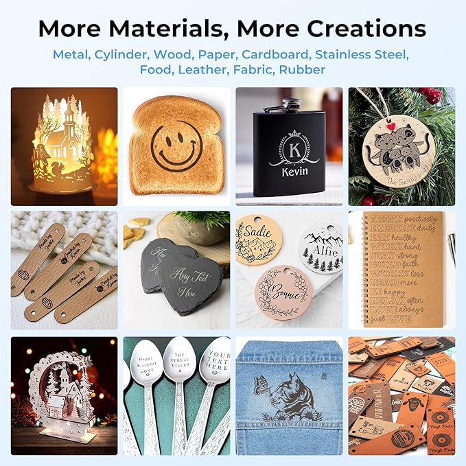 - 【Works with 200+ Materials】Engrave on wood, leather, acrylic, and more—perfect for a wide range of creative projects. Laser class 4, power output level 7500 mW.