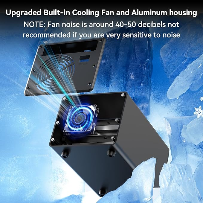 - 【No heat】This NVMe enclosure built in Aluminum-Alloy materials and 2.7 inch Silent Fans.In order to protect the user's data security, we use a fan that does not sleep and continuously cools the hard drive. Not recommended if very sensitive to sound.