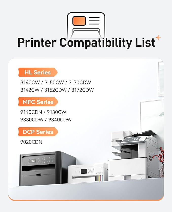 - Compatible Printers: Compatible with Brother DCP Printer Series:DCP-9020CDN. HL Printer Series:HL-3140CW, HL-3150CW, HL-3170CDW, HL-3142CW, HL-3152CDW, HL-3172CDW. MFC Printer Series:MFC-9140CDN, MFC-9130CW, MFC-9330CDW, MFC-9340CDW.