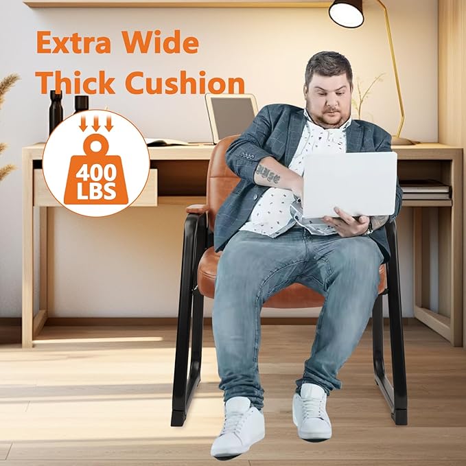 CLATINA Big & Tall 500 lbs Waiting Room Chairs with Padded Armrests and Sled Base, Leather Stationary No Wheels Office Guest Chair for Reception Lobby Home and Meeting Conference, Brown (8 Pack)