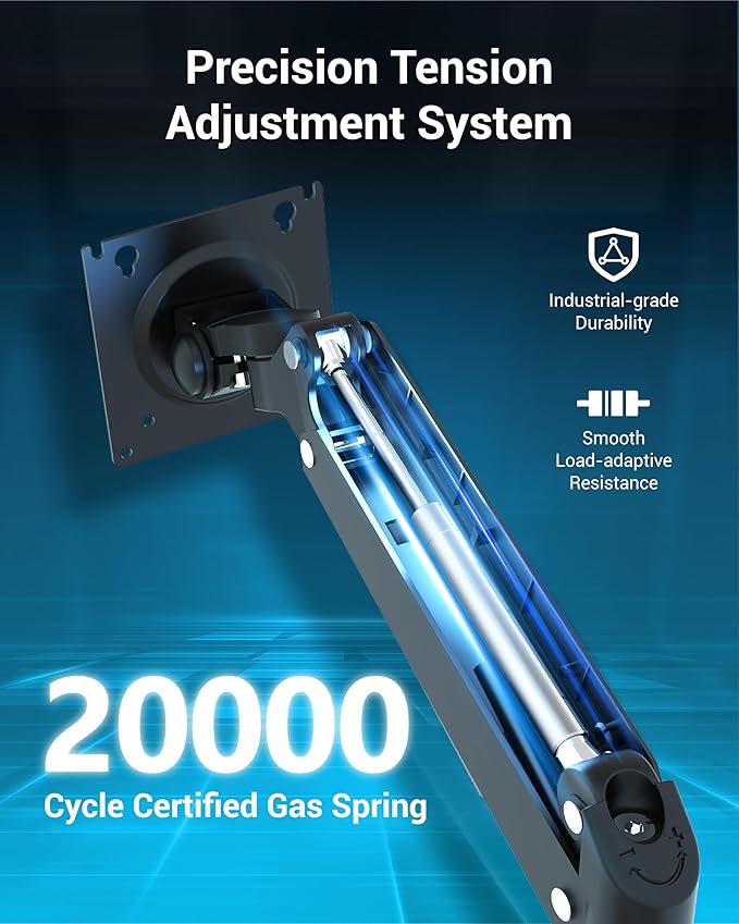 - 【Industrial-Grade Durability】 Equipped with premium gas springs to eliminate rebound, our 2 monitor desk mount delivers ultra-smooth, effortless screen adjustments—far surpassing standard stands. Rigorously tested over 20,000+ cycles, it guarantees rock-solid stability at every extension angle.
