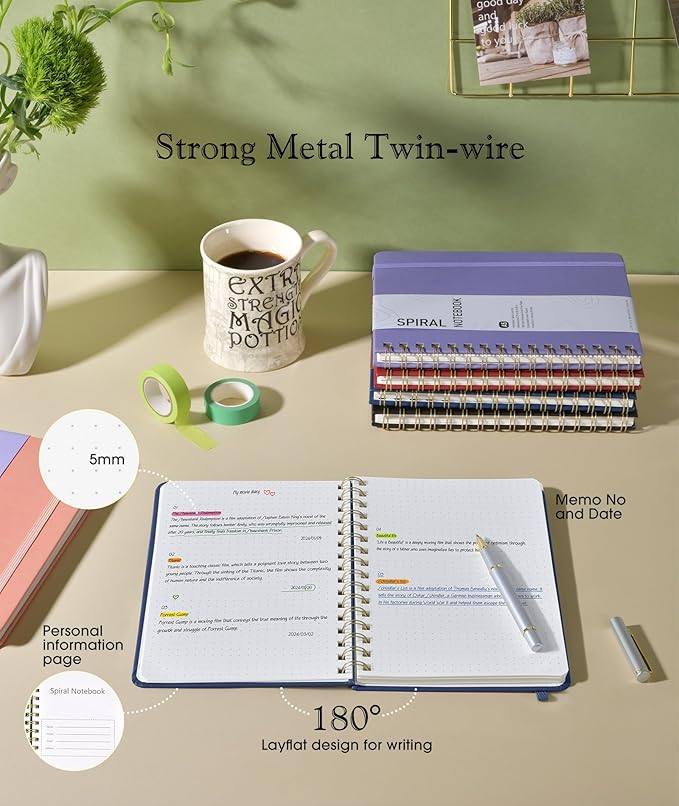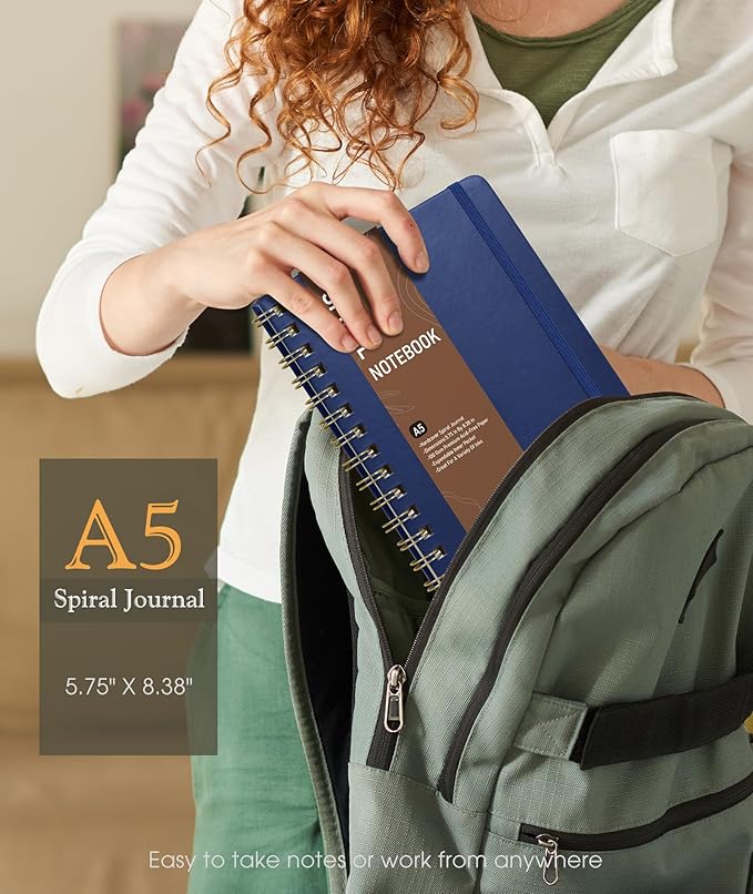 Graph Spiral Journal Notebook, A5 Hardcover Spiral Journals for Women Men, 100 GSM Graph Paper Notebooks, 150 Pages Spiral Bound Grid Notebook for Writing Note Taking Work 5.75" x 8.38", Navy Blue