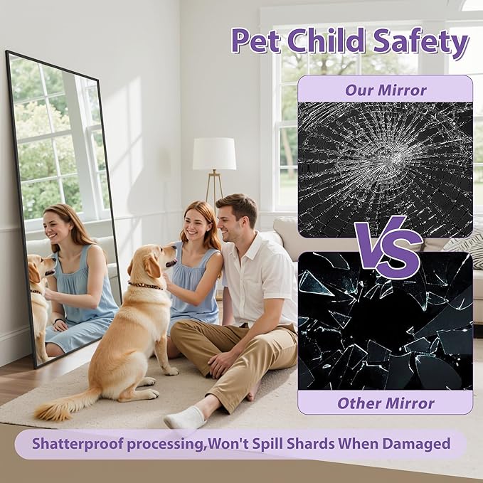 Full Length Mirror, 58"x21" Oversized Floor Mirror Freestanding, Full Body Mirror Floor Standing Mirrors with Stand, Hanging Mounted Mirrors for Bedroom Living Room, Black, Rect Style