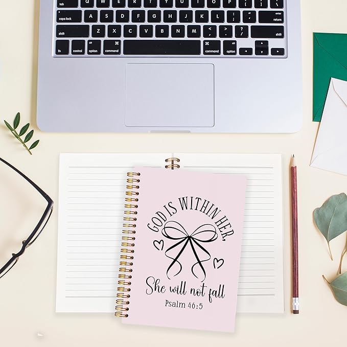 BearCake Pink Coquette Bow Christian Notebook Journal, God is Within Her She Will Not Fall Bible Journal for Women, Christian Religious Gifts for Woman, Hardcover Spiral Notebook 5.5x8.3
