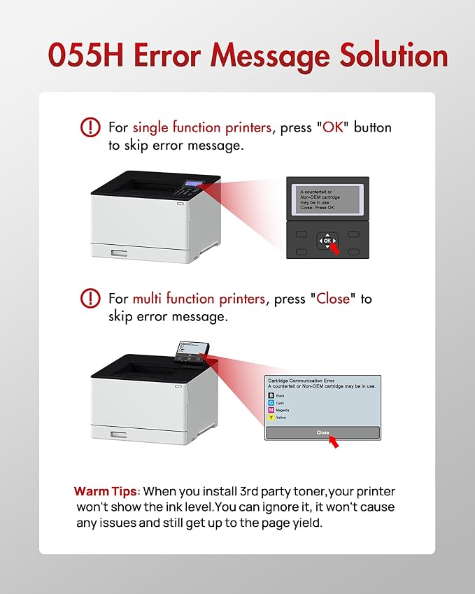 - 4. Excellent Performance: 055H replacement for canon 055 toner cartridge set count on high-quality, reliable printing and save time by avoiding common printing problems