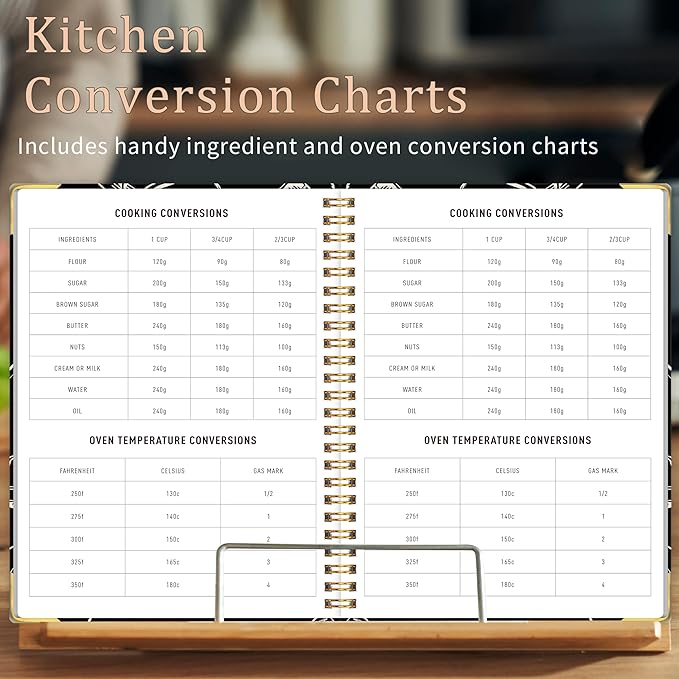 - 【Fully Functional & Novel Design】The blank recipe book features an ingredient conversion chart (cup to gram), an oven conversion chart (Fahrenheit, Celsius, gas),Reduce cooking troubles and enjoy a smoother cooking experience every time