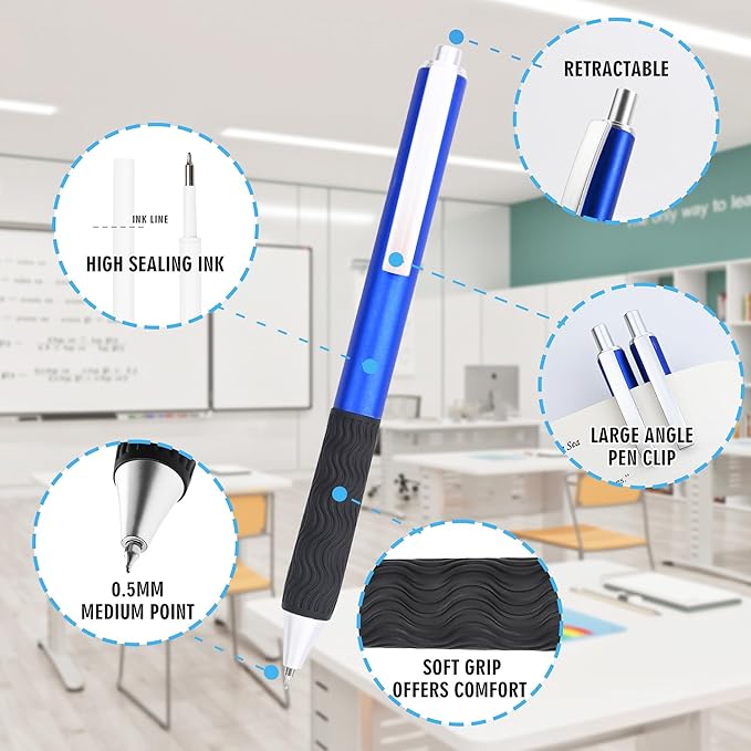 Bulk Gel Pens,50pcs Black ink Gel Pens.Wholesale Retractable Ballpoint Pen,0.5mm Fine Tip for School,Office, Nurses Notes Office Supplies(Blue body)