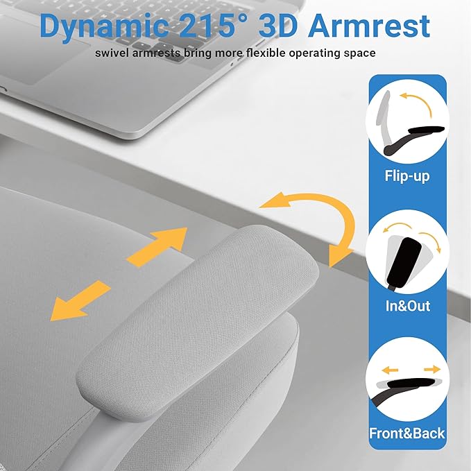 HYLONE Heavy Duty Office Chair, 5" Thickened Seat Ergonomic Desk Chair with Adjustable Armrests, Home Office Computer Chairs for Long Hours Mesh Executive Chair(Grey)