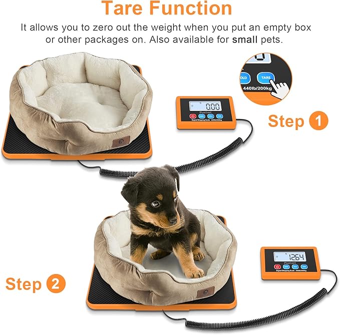 - Lightweight Postal Scale - Max. Capacity: 440lbs/200kg, Min. Readability: 40g, Accuracy: 10g. Made of durable ABS and rubber, lightweight + sturdy, easy for moving, storage.