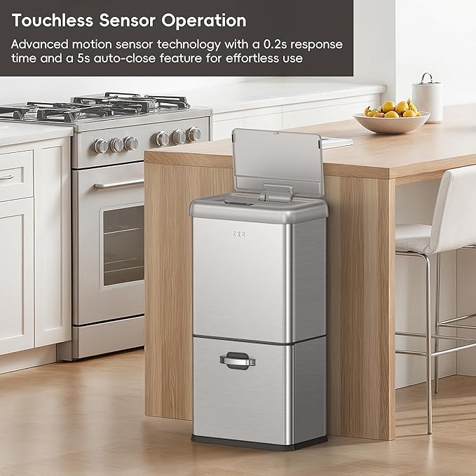 - Built to Last – Crafted from durable stainless steel with a fingerprint-resistant finish, this stylish and sturdy garbage can is built for long-term use and easy maintenance.
