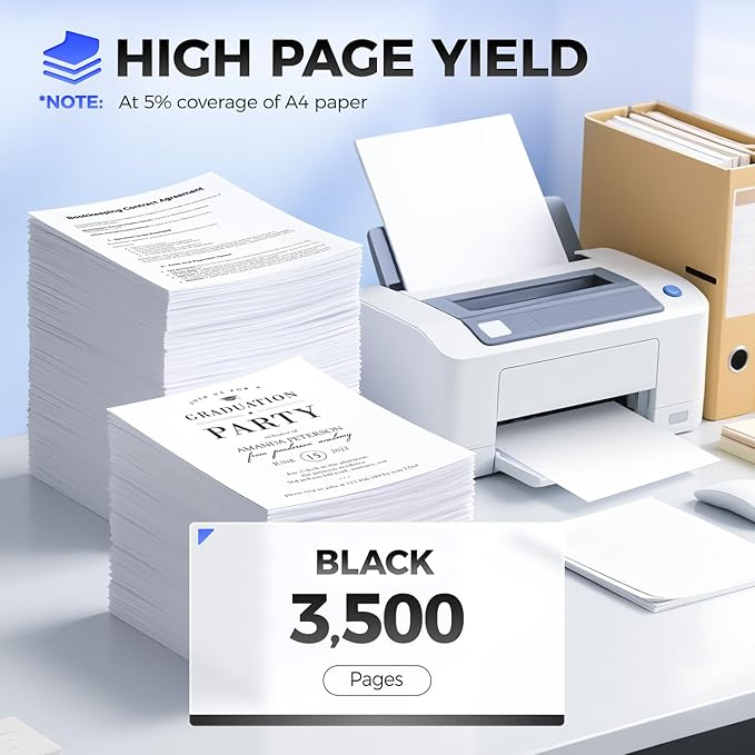 - High Page Yield: Up to 3,500 pages per E260A11A Black Toner Cartridge,(at 5% coverage of A4 Paper), High Yield Version E260A11A Toner Cartridge.