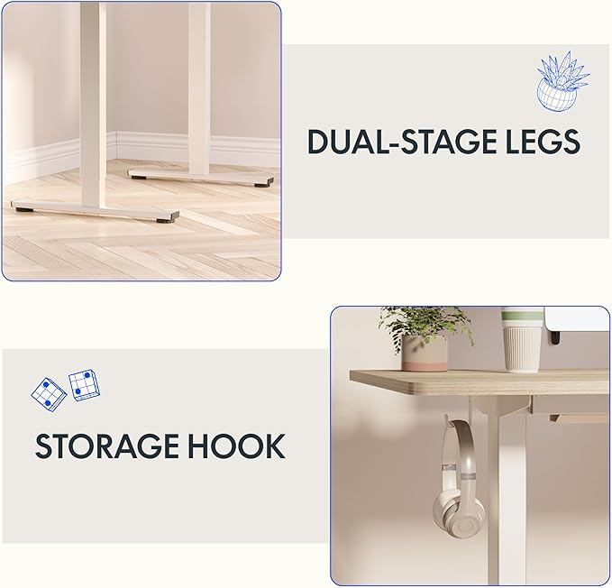 - SMOOTH ELECTRIC HEIGHT ADJUSTMENT: Say goodbye to manual height adjustments. This desk is equipped with an electric lift system that allows you to easily adjust the desk's height from 28.9" to 46.5". Even better, the motor operates quietly with noise levels below 50 dB, ensuring a peaceful working environment.