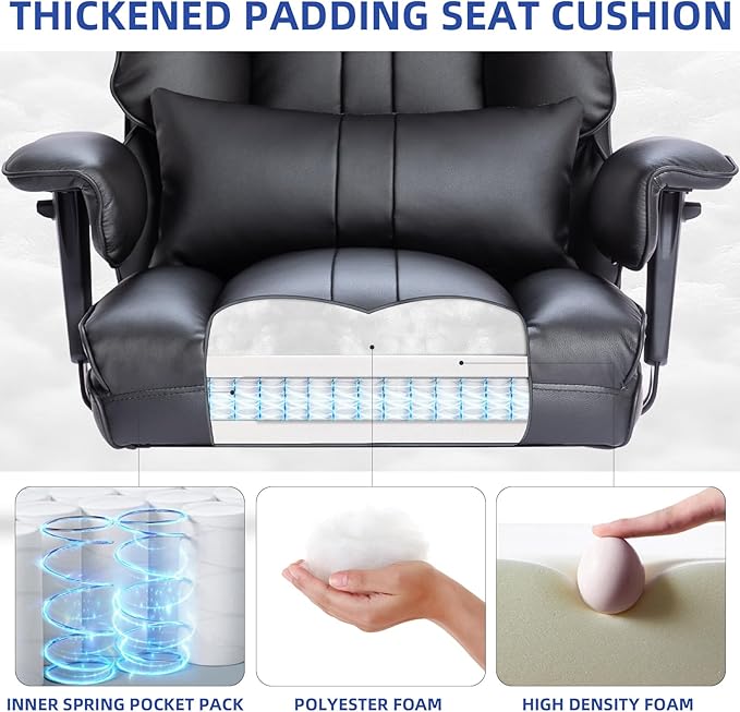 - πͺππππππππππ: Big and tall office chair features scratch-resistant PU leather. Task chair is easy to maintain. Big high back office chair filled with double-layer polyester foam and sponge seat and backrest provide unmatched comfort for all-day sitting.