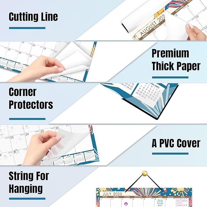- ✨【Transparent Plastic Cover】Our desk calendar 2025 with clear plastic cover protects the calendar from accidentally tipped coffee or water wetting the papers,Two corner protectors are included to keep the pages flat( tips : Writeable after lifting the cover)
