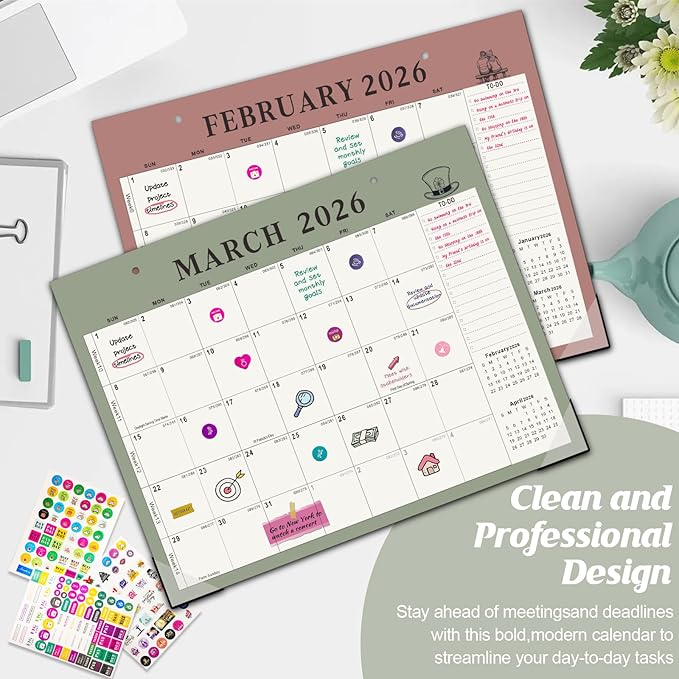 - 📔【Planning & Organization】2026 Yearly monthly desk calendar has logical daily block, notes and us holiday reminders, comes with stickers to help you organize your busy life and academic work, and easily keep track of appointments and meeting activities