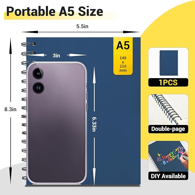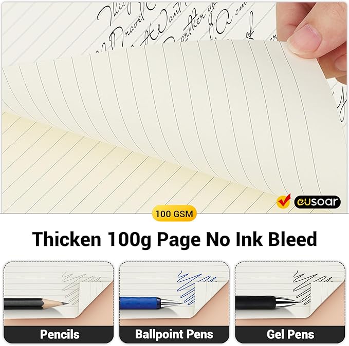 - 【Package Included】1 pack A5(5.5"x8.3") lined notebooks(each book has 240 pages/120 sheets of paper). And 100gsm thickened inner paper is great for smooth writing with no ink bleed.