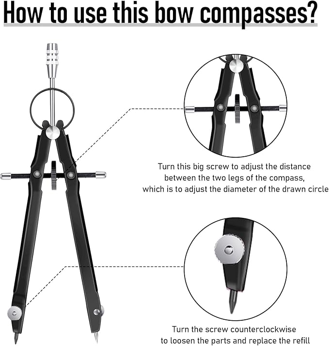 - Warm notice: if you receive the product and found the screw of compass is loose, do not worry, it is not a quality problem; The loose screw makes it easier for you to turn the pencil down; You can tighten the screw after using pencil replace divider part