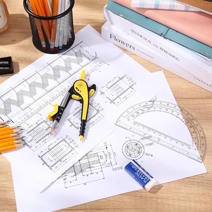 - 2 Diverse tips design compass: compass is made of plastic, sturdy mechanism can hold a radius well; The opposite side of the pencil end is an adjustable separated jaw, which allows you to fix the pencil