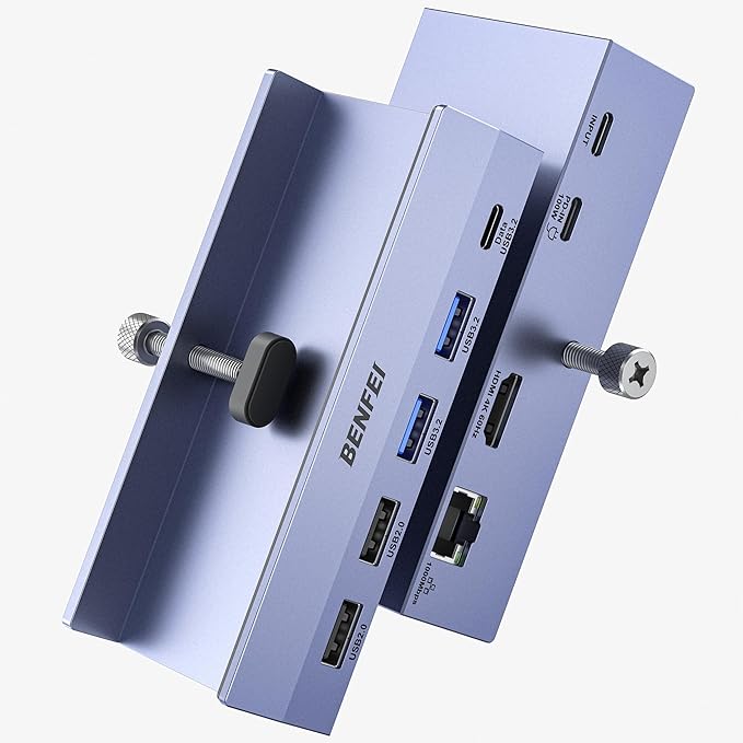 - 【New Clampable Hub Design】BENFEI USB C Hub designed with adjustable screw allow you to mount monitor screen edge or desk edge thickness from 0.19 to 1.41 inches (5-36mm), without occupying much space and keeping your desk top neat. The fix Hub is easy installation and sturdy and rubber cover on the screw can protect monitor's finish.