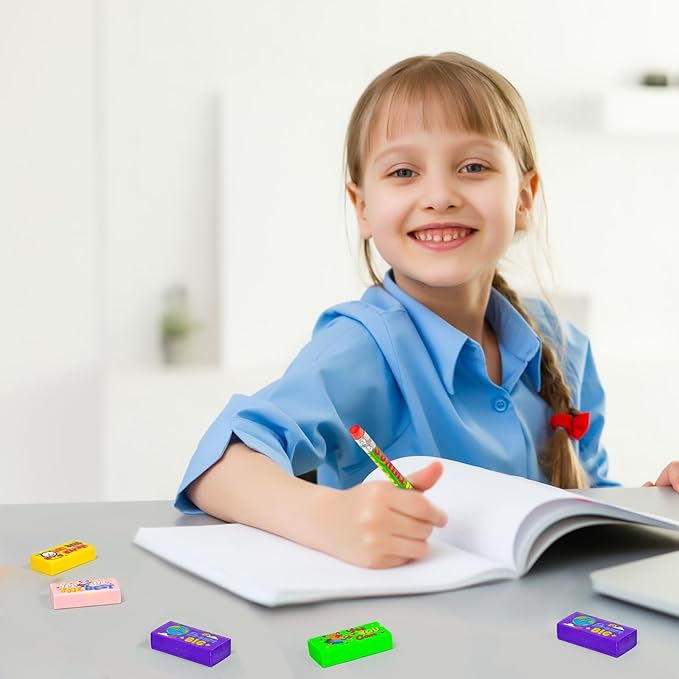 - Perfect for Back-to-School Gifts & Classroom RewardsοΌIdeal for teacher prize boxes, first day of school treats, goody bag filler gifts,birthday party favors, or positive reinforcement tools. These fun and functional erasers help make learning more engaging and enjoyable