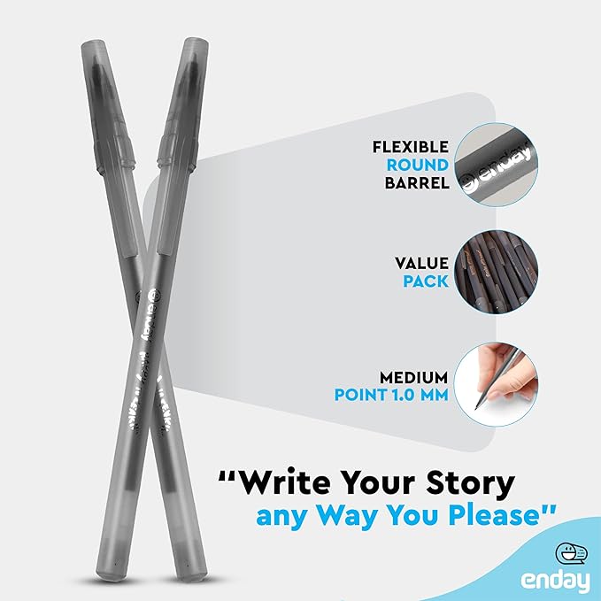 Enday Bulk Ballpoint Pens Black (240 Pack) Ink pens bulk, Medium Point 1.0mm, office, Smooth Writing black ink pens for School, Home, and Office.