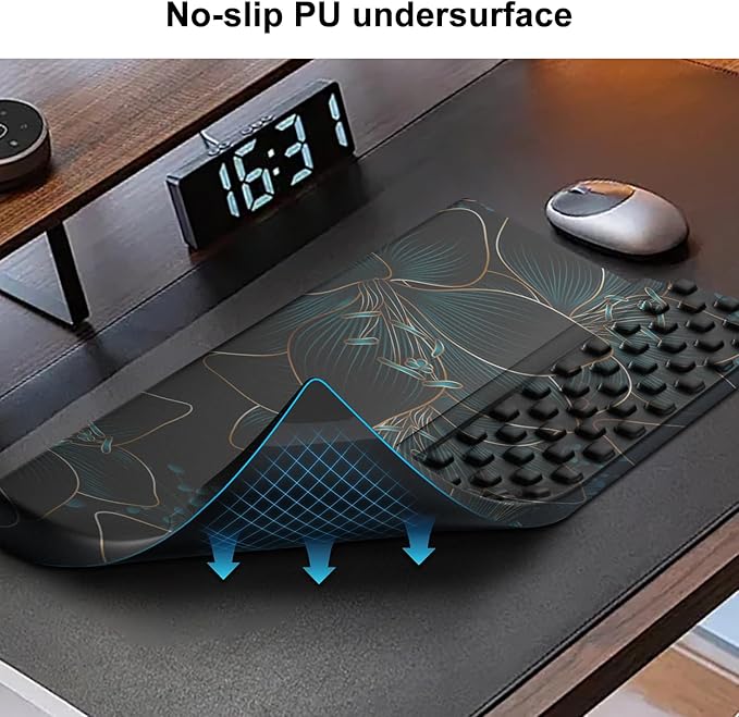 - 【Lycra Fabric Covering &Non-Slip Pu Base】Made of PU material, provides higher stability than the rubber base, which effectively prevents it from sliding on the desktop.The keyboard pad can remain in place even during intense work or gaming