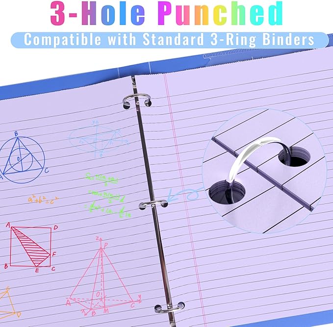 - 3-Hole Design: Wide ruled loose leaf paper can be placed in a 3-ring binder or pointed file folder as needed to keep school and project notes organized