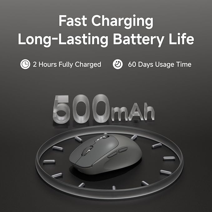 - Dual Connection: Connect two devices simultaneously using either Bluetooth/2.4G connection for a wireless mouse experience. Seamlessly switch between the connected devices with a simple slide of the switch button.