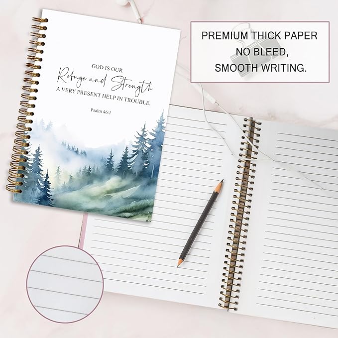 - 2.Bible Journaling Hardcover Spiral Notebook The notebook has a double spiral design, the sturdy spiral binding allows the notebook to lay flat, making it easy to write on both sides of the page. made of thick paper, prevents ink from leaking, safe, easy to write