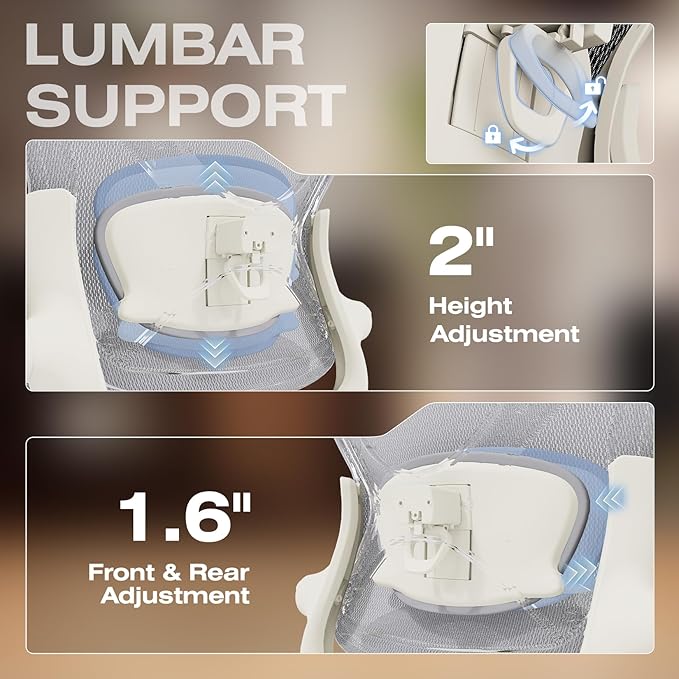 - 【Engineered with Dynamic Spinal Alignment System】3D Synchro-Tilt Lumbar(Lockable ±1.6" depth spring-loaded auto-tracking/±2" height/15° rotation)with force-sensitive springs mimics natural spine curvature, certified by AEP* for 12hrs+ fatigue reduction in ergonomic chairs (*American Ergonomics Partnership)
