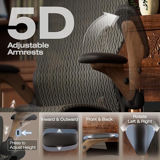 - 【Smart Space-Saving Features】 5D Flip-Up Armrests with skin-friendly panels - 27% denser EVA foam padding achieves Zero-Pressure Contact, it can be adjusted at Height/width/forward/backward/rotate/flip function, a space-saving flip-up design that tucks neatly under standard desks
