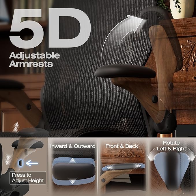 ELABEST X100 Ergonomic Office Chair with Footrest, Big and Tall Home Desk Chair with 5D Flip-Up Arms, Adjustable 5D Lumbar Support,High Back Rolling Computer Chair, Swivel Mesh Chairs (Library Oak)