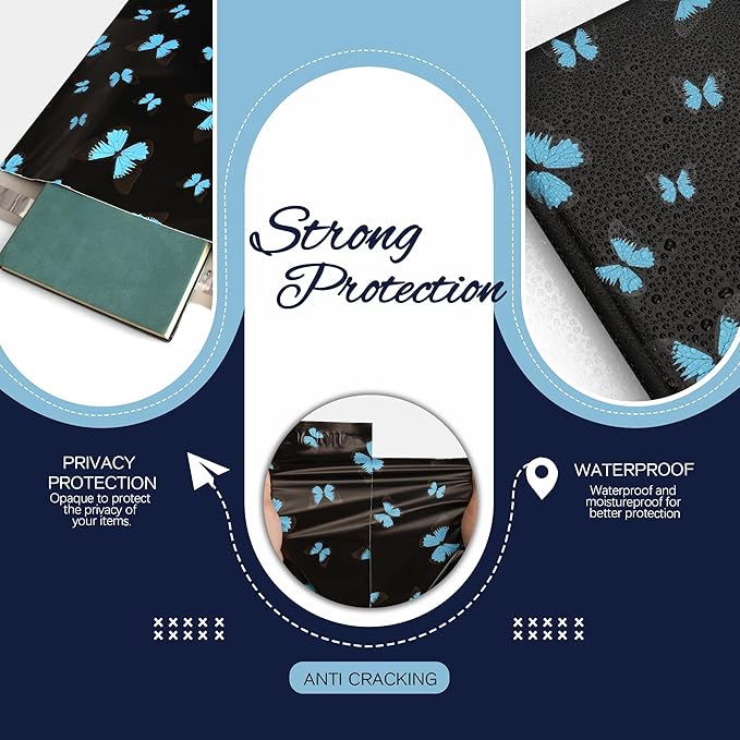 butterfly Poly Mailer 6x9 Inch 100 Pcs, Waterproof Shipping Bags for Clothing, Tear-Resistant Mailier Bags, Strong Mailing Bags with Self-Seal