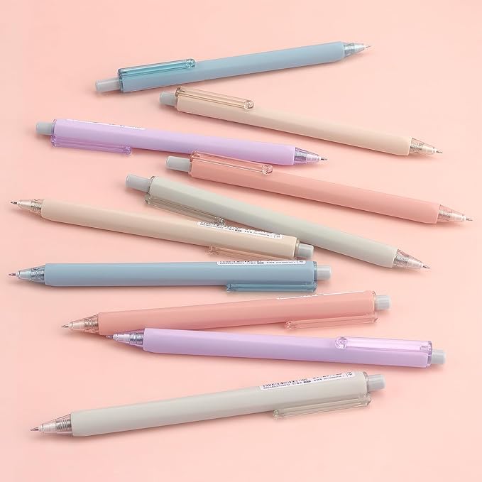- Stylish 5-Color Pastel Pen Set (10 Pens Total) This set features our classic black pens enhanced with soft, elegant pastel tones and fresh color accents, making them ideal for a variety of uses—from color-coding and organization to thoughtful gifting. These black pens refined matte finish complements both professional environments and creative spaces alike.