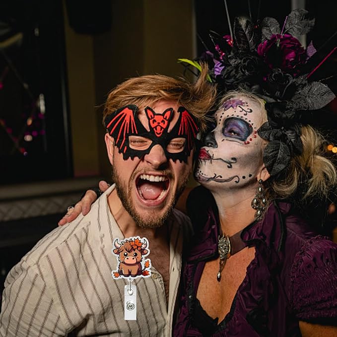 - Cute Halloween Design: The Halloween badge reel features an adorable cow with maple design, making it a perfect accessory for the festive season, enhancing your work attire with a touch of Halloween spirit