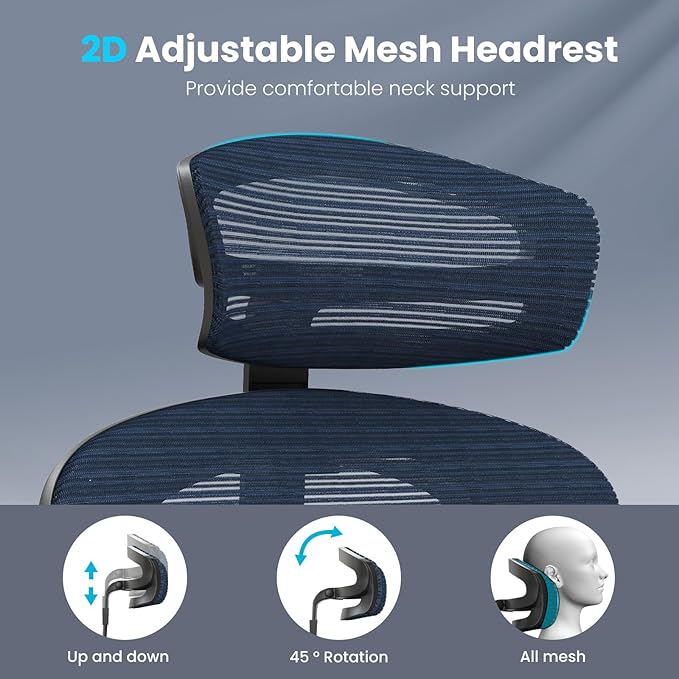 Farini Office Chair Ergonomic Desk Chair, High Back Computer Chair with Wheels, Home Sutdy Chair for Heavy People, Office Chair Adjustable Seat Depth, 3D Armrests and Adjustable Headrest, Blue