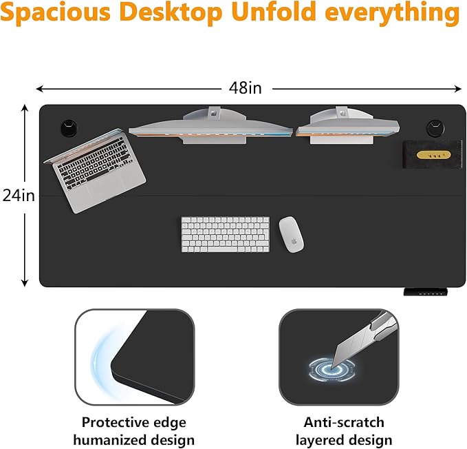 - 【Extra Large Workstation】– Boost productivity with our 48" L x 24" W desktop, providing ample space for monitors, keyboards, and office essentials. Designed for professionals and gamers, this clutter-free desk ensures a smooth workflow for work, design, or gaming. Enjoy functionality and freedom in one versatile workspace