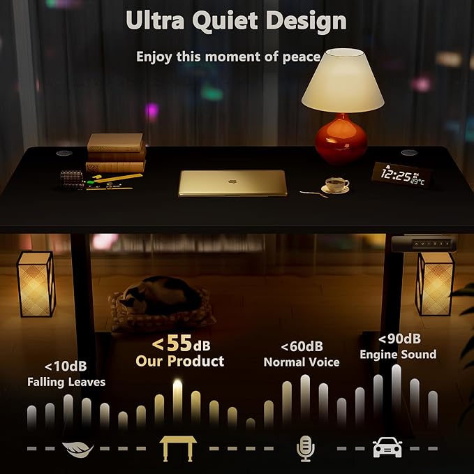 - 【Durable & Quiet Motor】– Designed for peak performance, our electric standing desk boasts a high-quality motor that delivers smooth, quiet height adjustments from 27.9" to 46.8", while the advanced anti-collision system ensures safe operation without interruptions