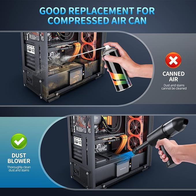 - Powerful Deep Cleaning for Keyboards & Electronics Delivers a high-pressure airflow (1.86–2.51 oz) to effectively remove dust and debris from keyboards, laptops, cameras, and other delicate electronics. Ideal for home, office, or car use.